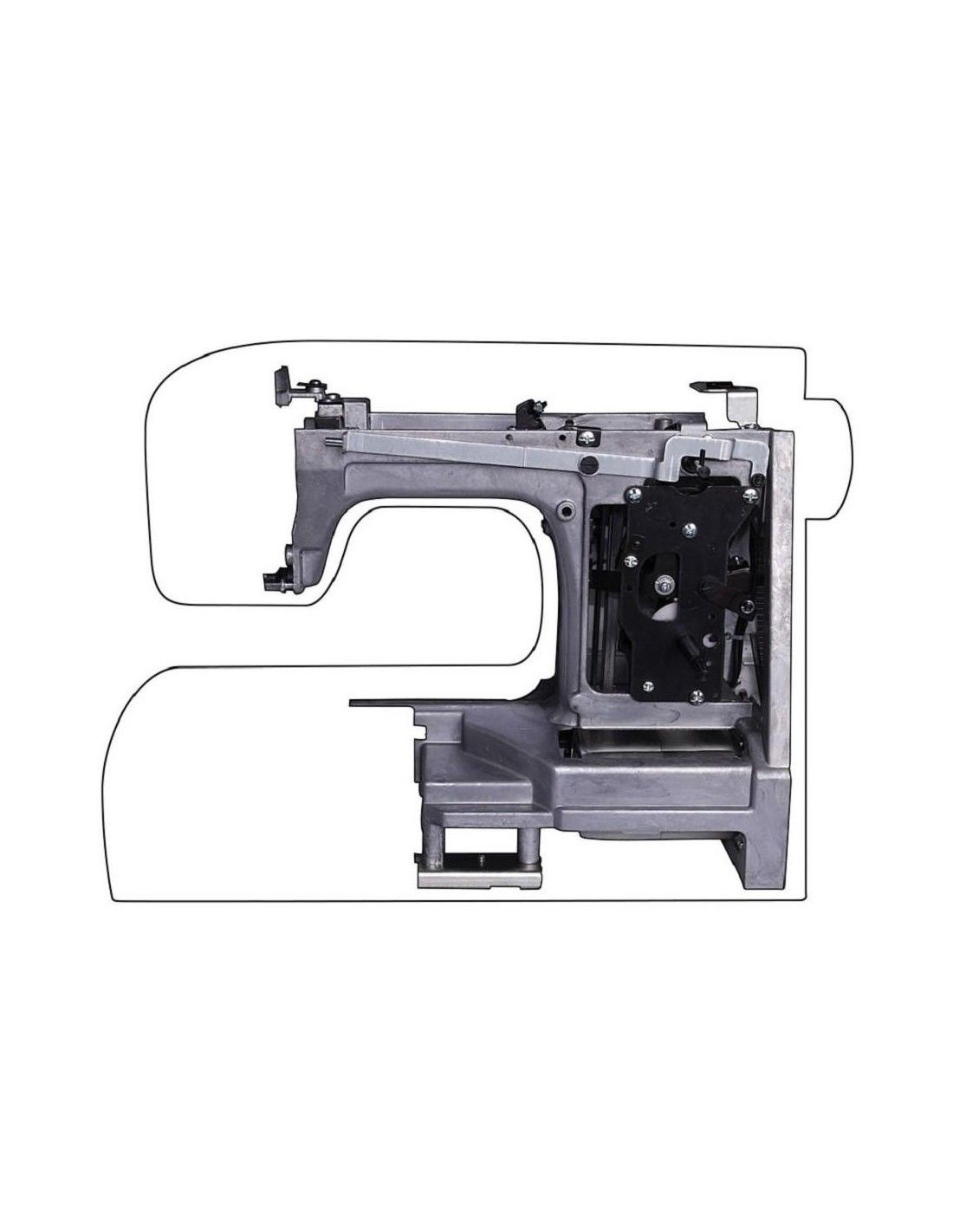 Occhiellatore a 1 tempo, piastra di rinforzo dell’area di cucitura in acciaio, regolazione pressione del piedino, tensione del filo regolabile così come lunghezza e ampiezza punto, abbassa griffe per cucire a mano libera, telaio in metallo.