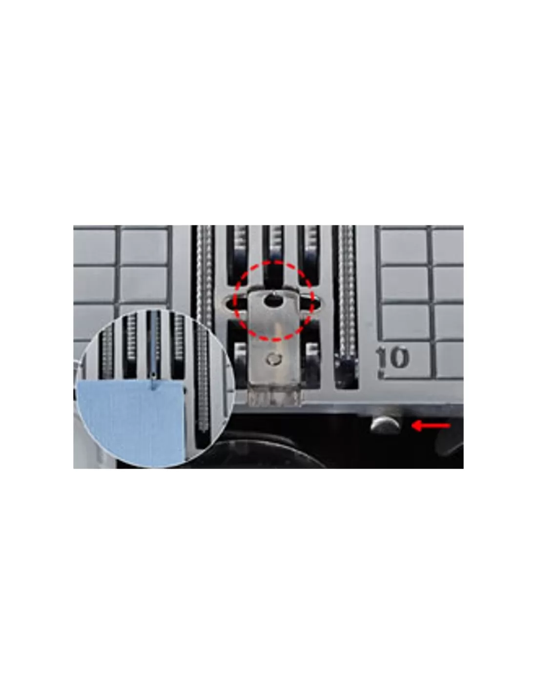 Per risultati professionali anche sui materiali più ostici come seta, chiffon e simili basta far scorrere la leva anteriore per passare al foro per ago unico e cucire i tessuti più leggeri con una perfetta penetrazione dell'ago: la perfezione di trasporto e di cucitura di una macchina industriale!