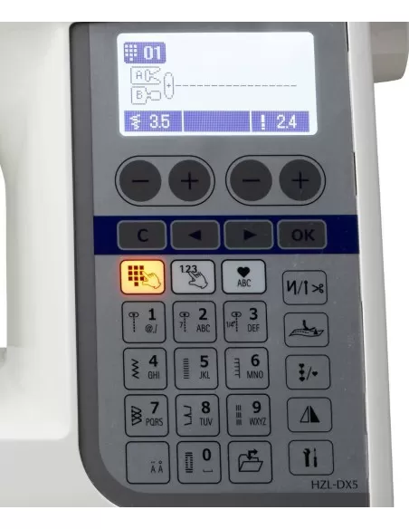 La macchina da cucire professionale Juki HZL-DX5 ti assicura una selezione facile e veloce dei 10 programmi di cucitura più utilizzati e risultati di qualità sartoriale.