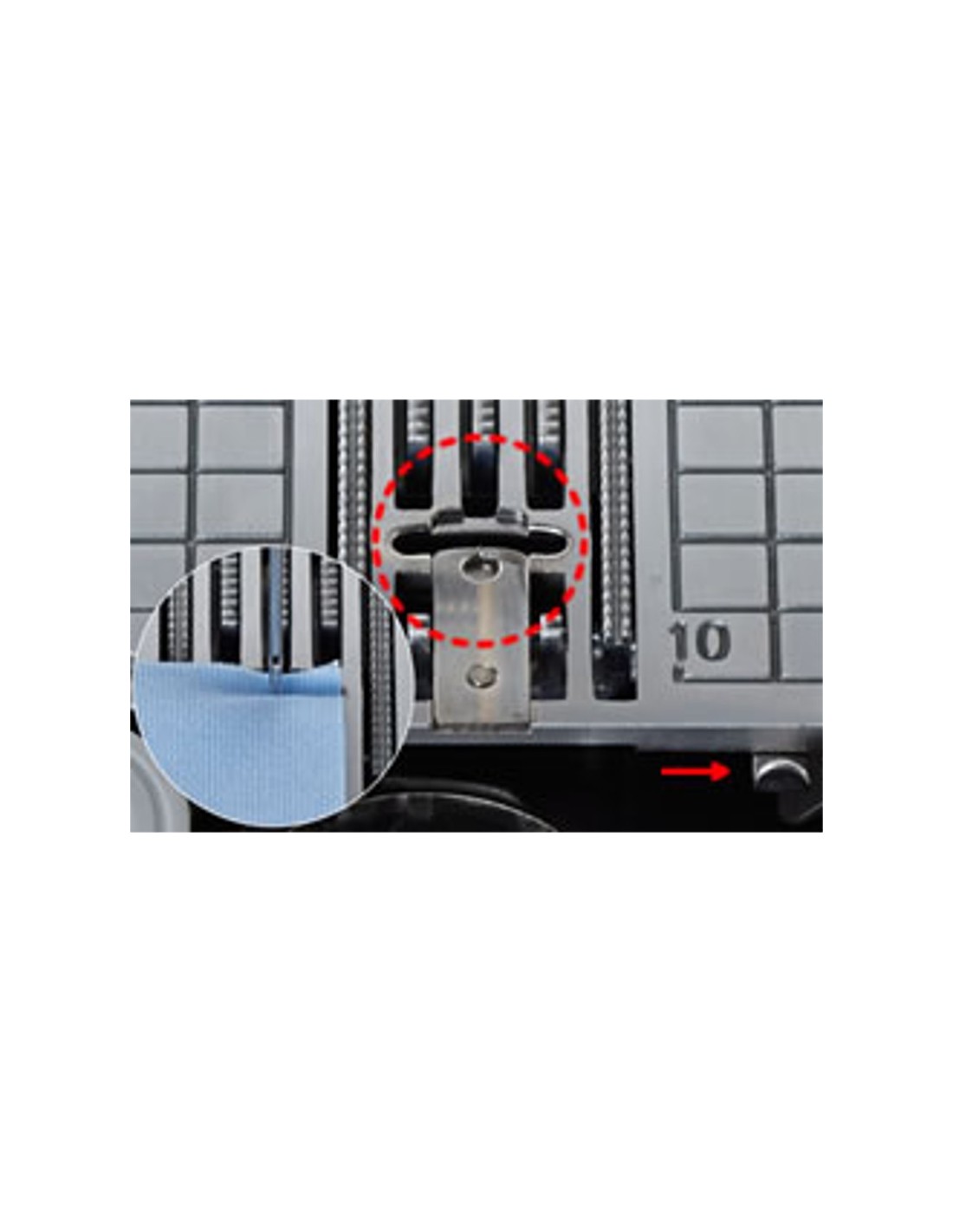 Inoltre come tutta la serie DX dispone del più avanzato sistema automatico per l'infilatura dell'ago. Grazie all'infila-ago automatico, l'unico che letteralmente infila l'ago automaticamente, l'inizio della cucitura avviene ancora più rapidamente. Guarda il video.