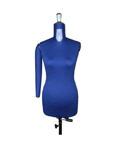 Manichino da sarta regolabile con braccio donna utilizza un rivestimento di tessuto elasticizzato che permette la regolazione della taglia dalla 46 alla 58 e consente di appuntare spilli con facilità e sicurezza.