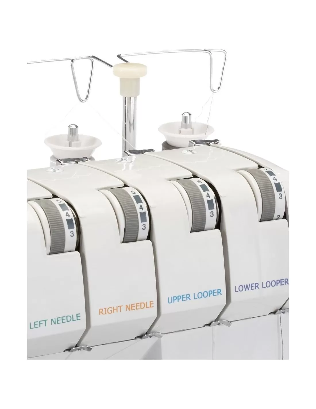 E' una tagliacuce con infilatura rapida ottenuta tramite l'apertura dei 2 sportelli della macchina che consente di avere ben visibili tutti i passaggi del filo compreso quello del crochet inferiore, il più ostico in qualsiasi macchina tagliacuce.