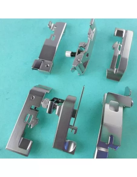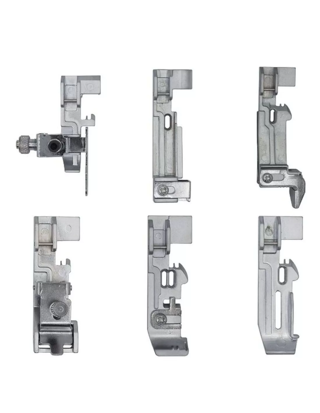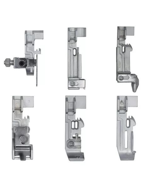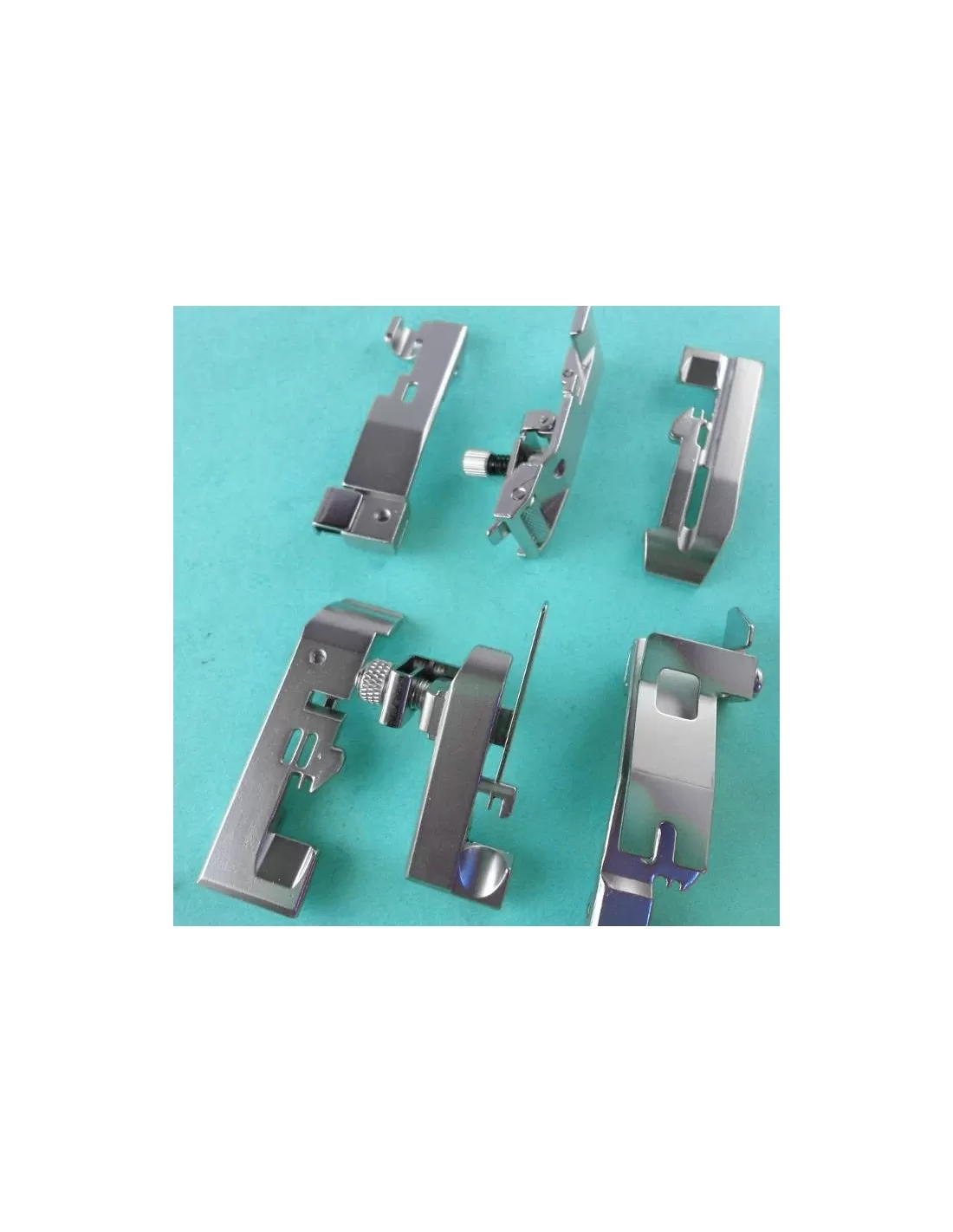 Kit di 6 piedini per diverse lavorazioni per le tagliacuci Pfaff Hobbylock 2.5, Coverlock 3.0 e 4.0, Husqvarna-Viking Huskylock S21 e S25, Necchi 150M e le tagliacuci Singer QuantumLock 14T948, 14T957, 14T967, 14T968.