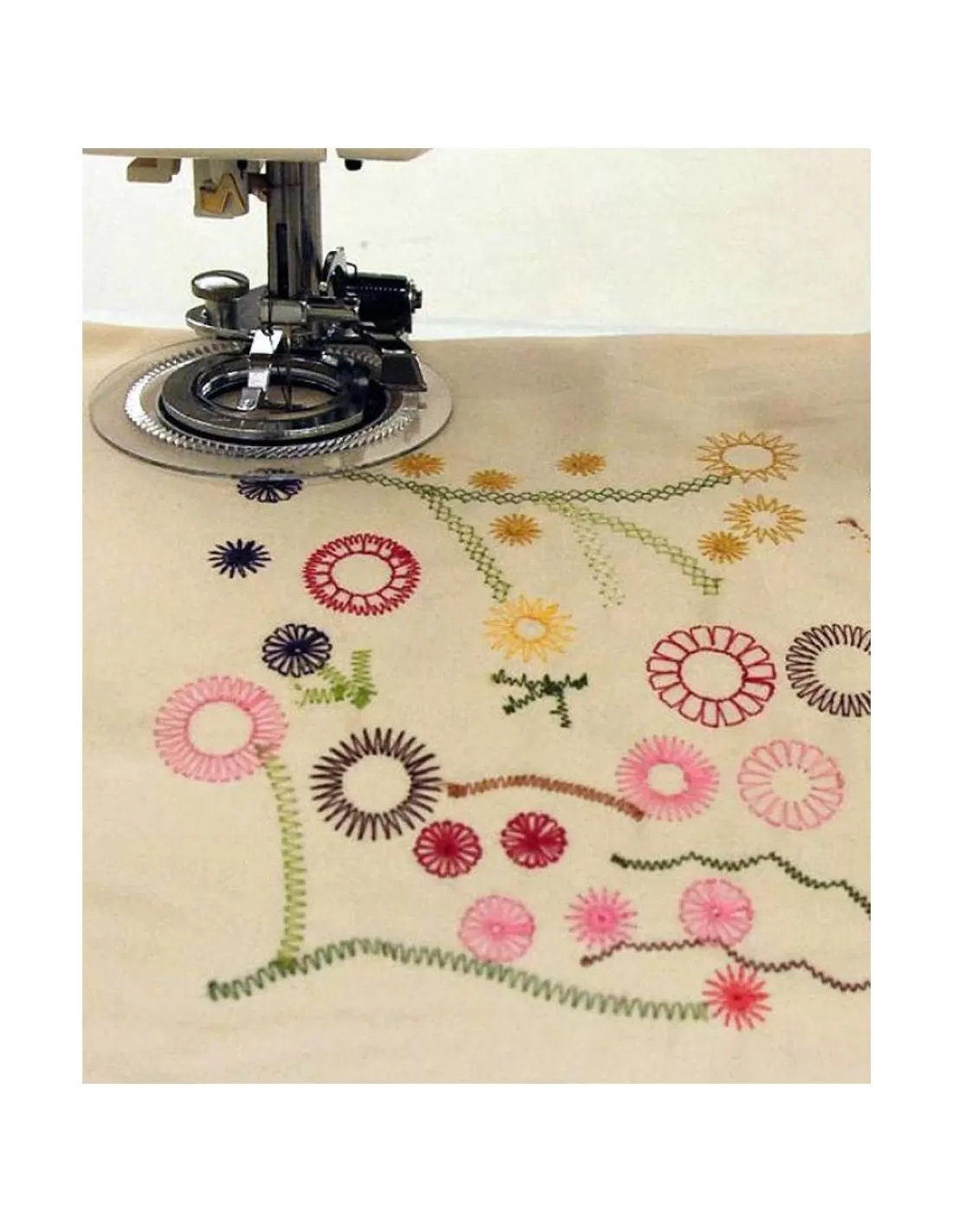 Il piedino Flower Stitch permette di realizzare fantastiche decorazioni eseguendo cuciture circolari e motivi floreali con le comuni macchine per cucire.