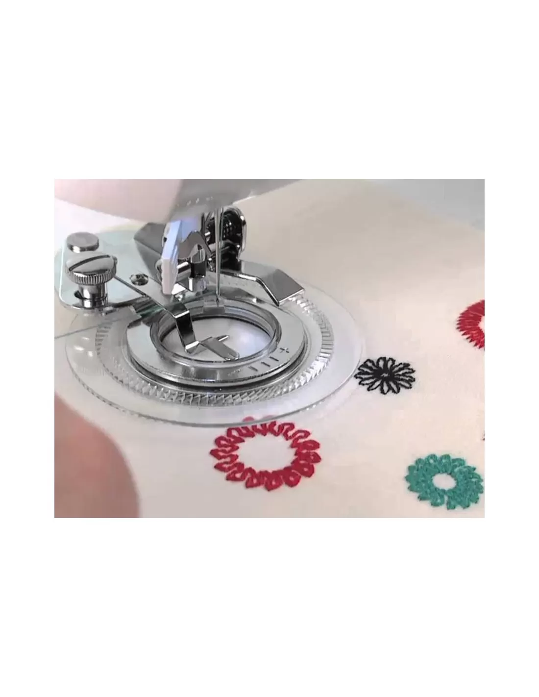 Il piedino Flower Stitch da montare sulla tua macchina da cucire è ideale per creare bellissimi disegni circolari di ispirazione floreale.