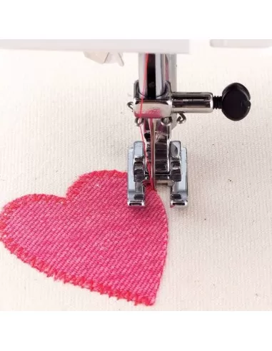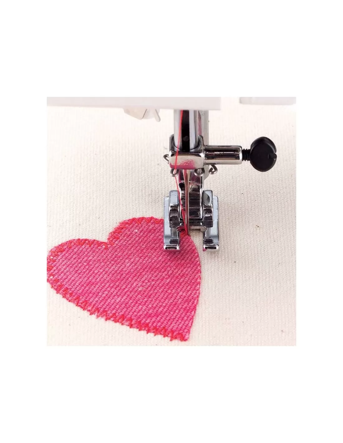 Il piedino aperto per applicazioni e decorazioni ti permette di vedere il lavoro mentre viene eseguito consentendoti una migliore visibilità e il massimo controllo del cucito.