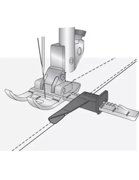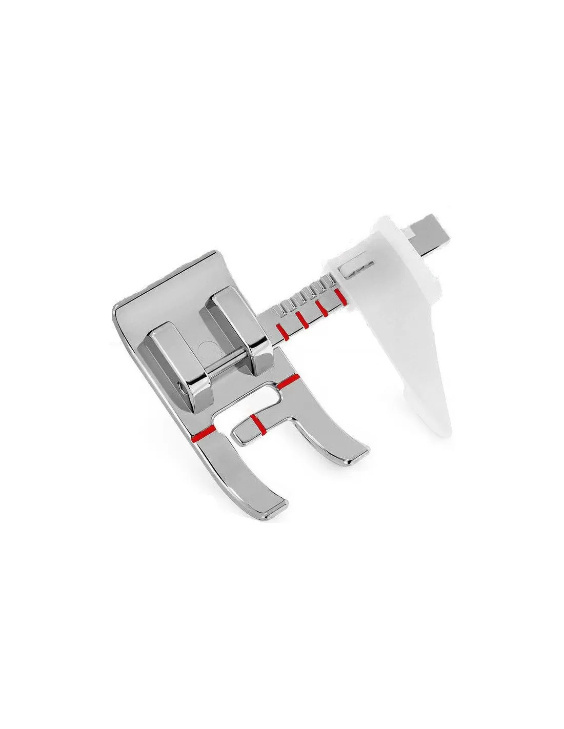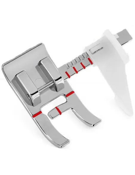 Il piedino con guida regolabile può essere utilizzato con tutte le macchine per cucire che hanno l'attacco snap-on e consente di eseguire cuciture precise.