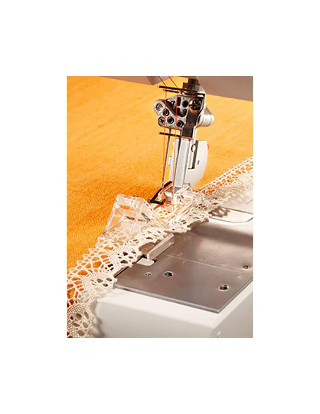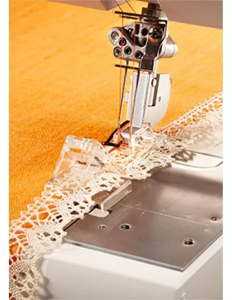 Questo speciale kit per punto copertura Singer, Pfaff, Husqvarna include 5 piedini che ti permetteranno di aumentare la visibilità mentre cuci con il piedino trasparente, di creare bordi decorativi ed effetti favolosi con il piedino per unire e ripiegare bordi e con quello per pizzi con margine piatto.