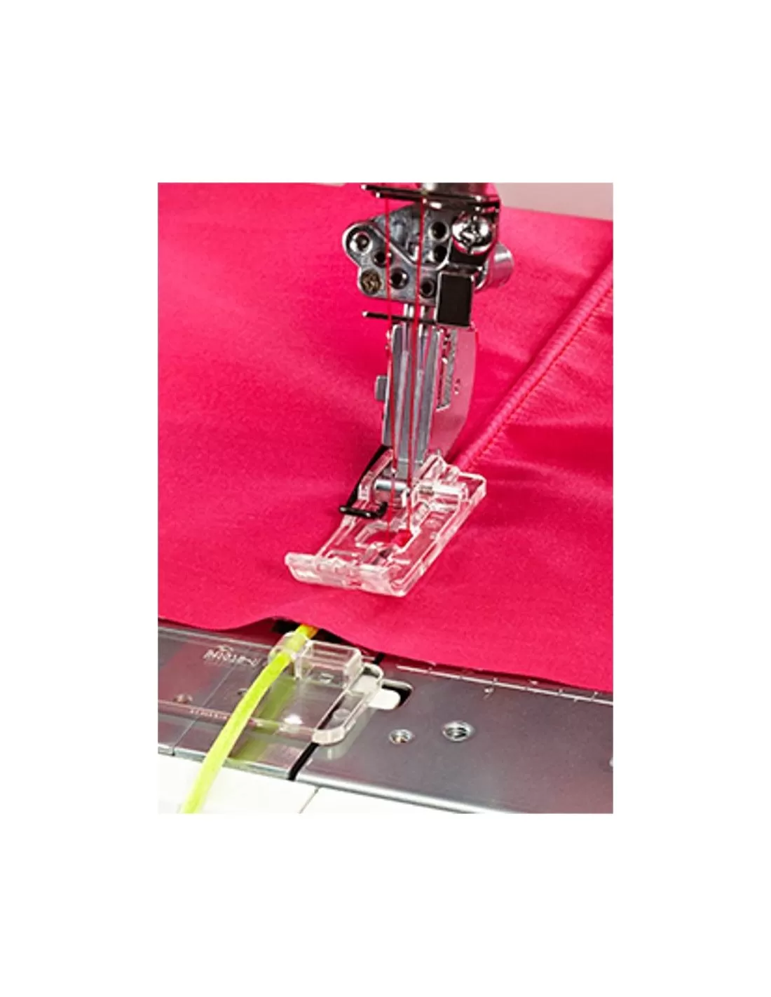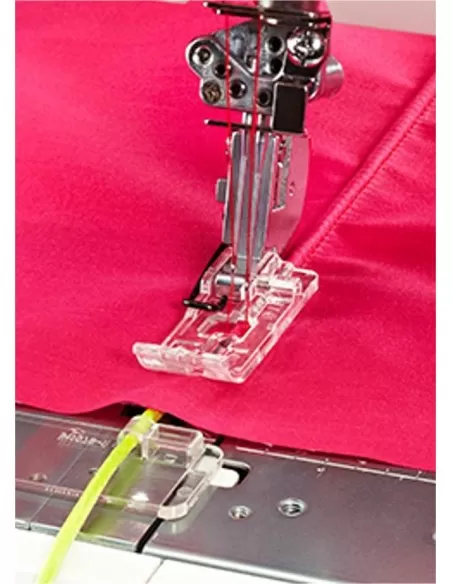 Cinghie e passanti sono facili da creare con il piedino per passanti e cinture così come aggiungere cordoncini e creare meravigliose finiture decorative grazie al piedino cordonatore con guida per il cordoncino.