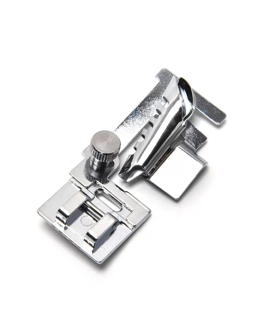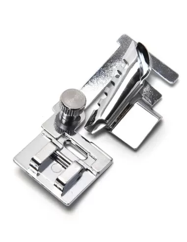Compatibile con tutte le macchine da cucire con attacco del piedino basso o alto e sistema di sgancio rapido snap-on. Larghezza max dello sbieco 24 mm.